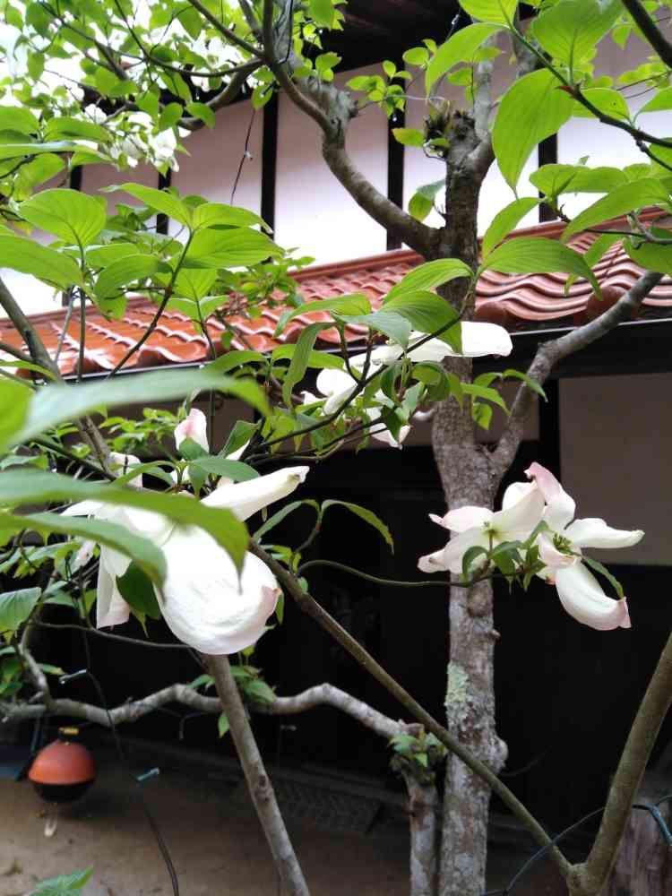 うちのハナミズキはもう咲き終わってしまいました。今は葉っぱが青々と茂ってます。