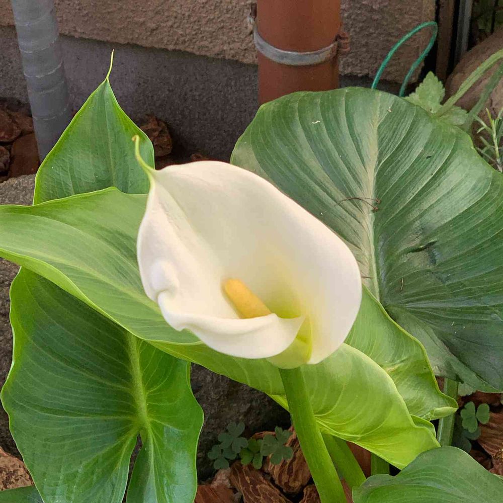 昨日まで固い蕾だったのにもう咲いてた❣️30年選手のカラーです。株分けしながら育てて来ました。