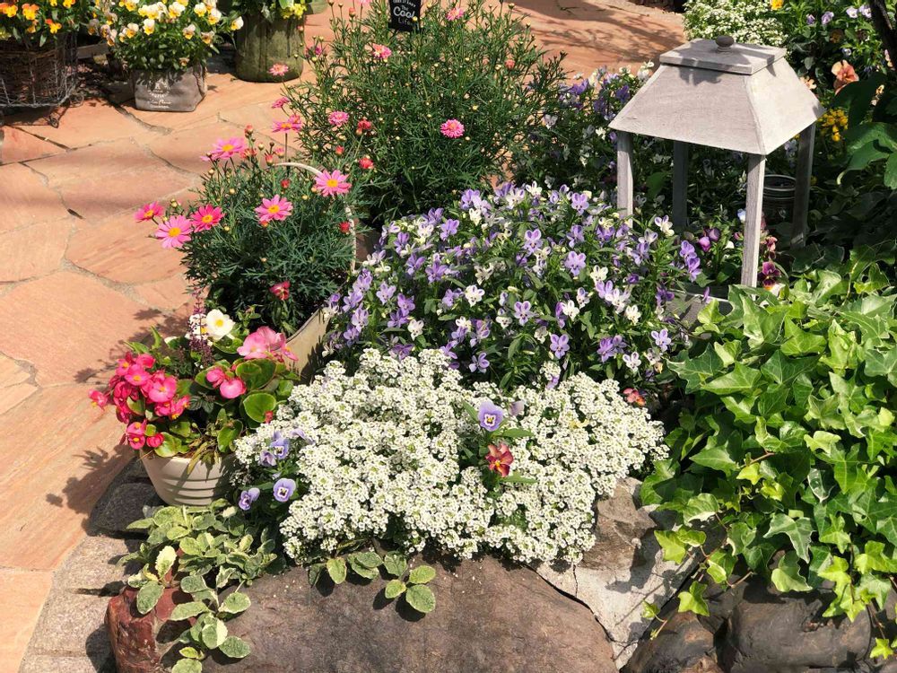 スイートアリッサムとビオラの碧いうさぎどちらも一株でとっても大きくなりました😊💕