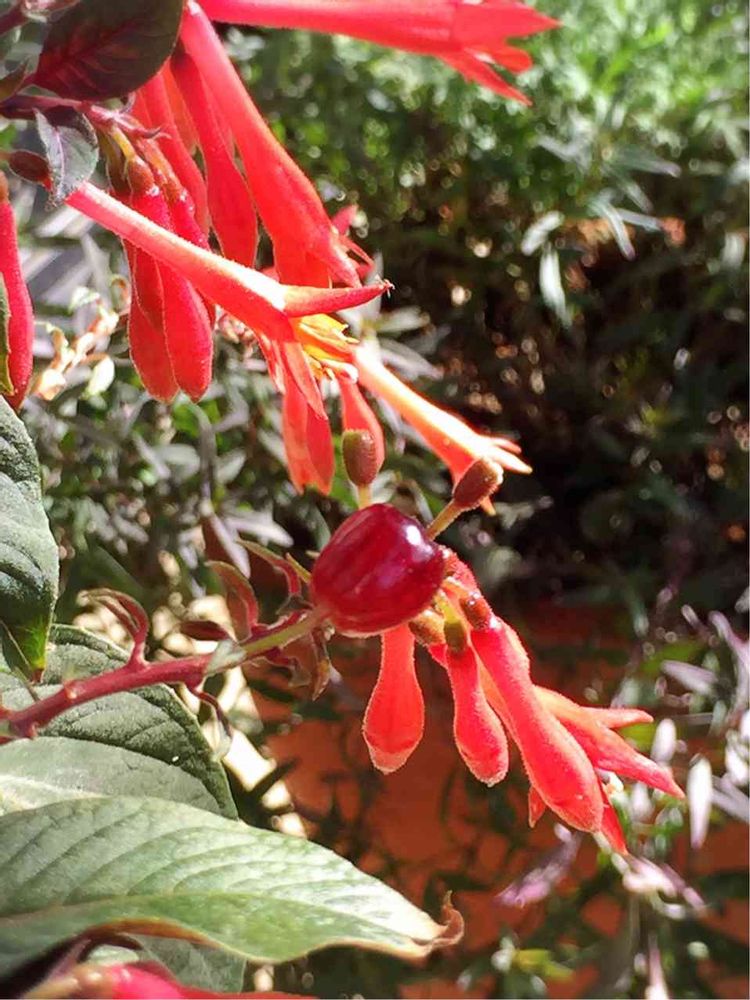 夏前からずっと咲き続けてくれているフクシアに、真っ赤な可愛い実がなりました♡