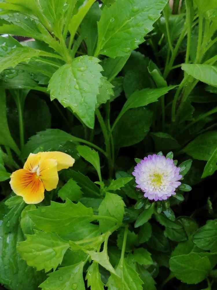 種子まきした、アスターがひとつたけやっと咲いてた💜💖