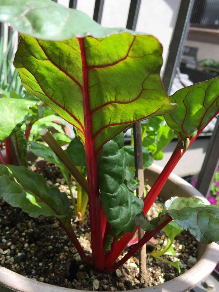 義実家へ行ったら、スイスチャードが元気に育ってました。