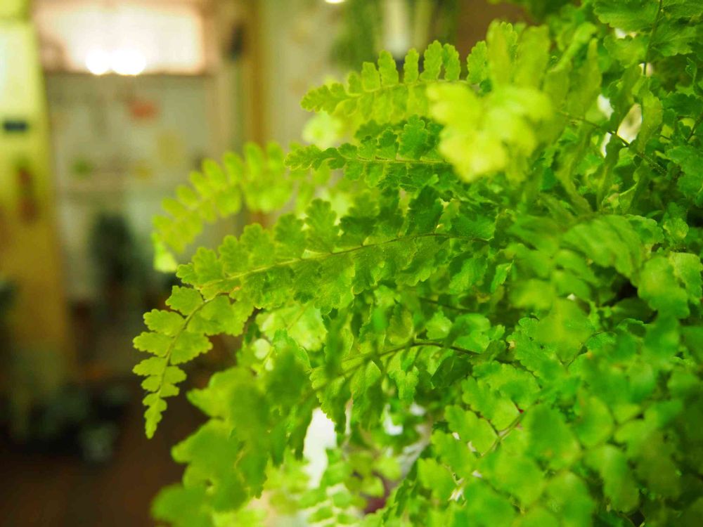 寒い日はお部屋でシダの葉をナデナデしたりして過ごしています( ̄▽ ̄)