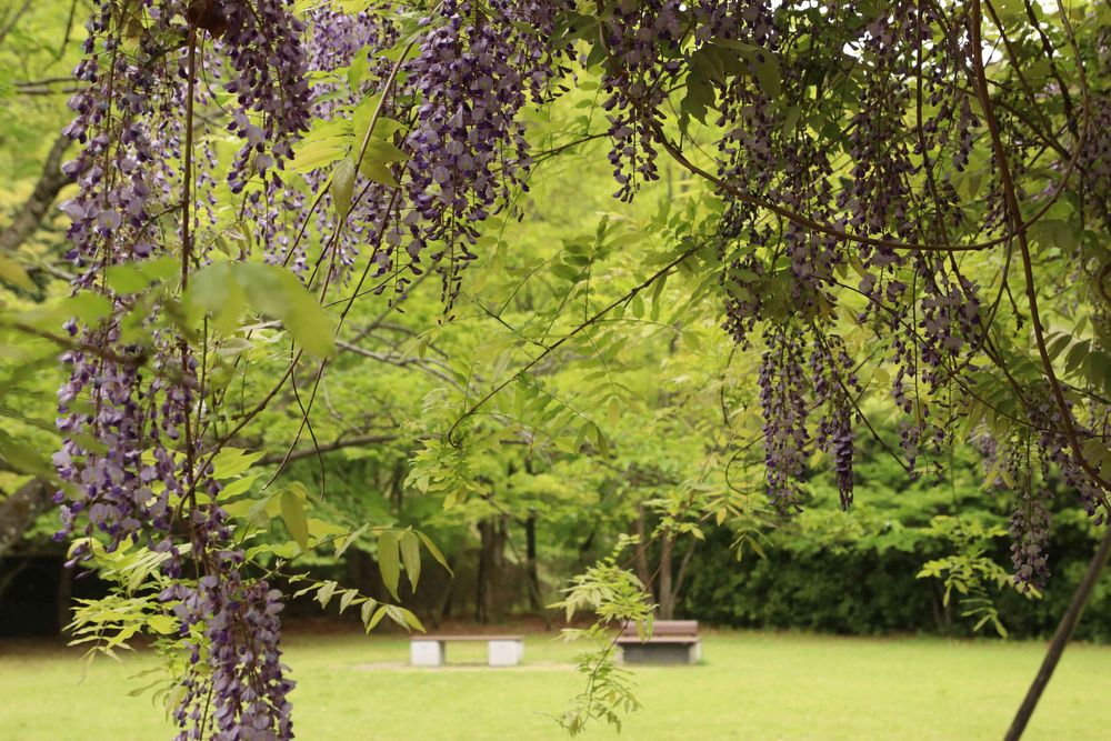 うんうん、ベンチに座って~、何も考えずに緑と藤を見たいですね✨✨