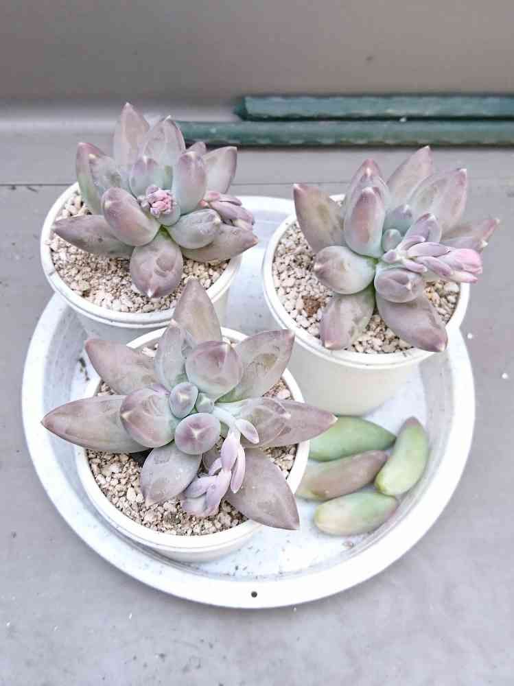 先月植え替えた、フーケリーハイブリッド🍀✨ポットの中に3本入っていたのでそれぞれ独立させて、下の葉何枚かもぎもぎ😊💡こちらは葉挿し用に置いています😉🎵