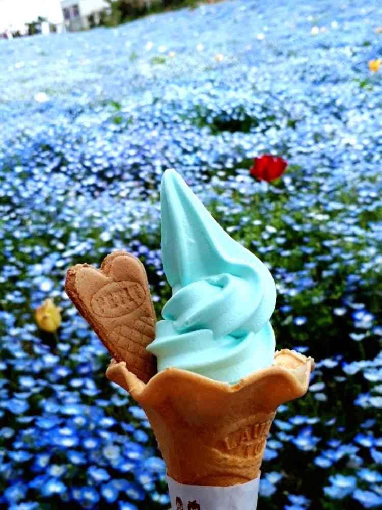 青いネモフィラと“空・海・花のネモフィラブルーソフトのブルーアイ”
