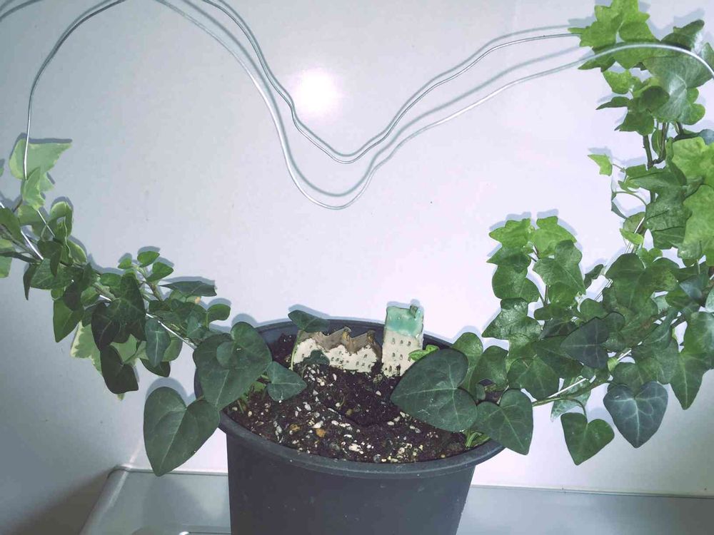 夏の間、グリーンのリハビリルームに置いてあったのですが(^ ^)、元気がなかったので、水浴びさせてからワイヤーに巻き直し、キッチンの窓辺に置いたら、急に元気になりました。