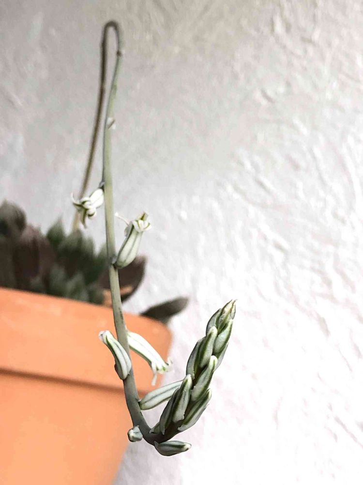 外放置のハオルチアから長〜い茎?が伸びて花咲いてた👀