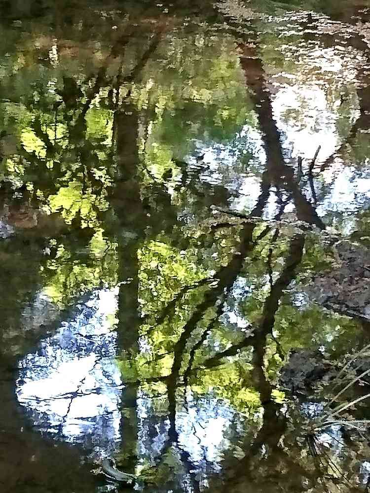 新緑を楽しむのに、見上げるだけでなく、池や小川の水面を見る楽しみ方も教わった気がします。