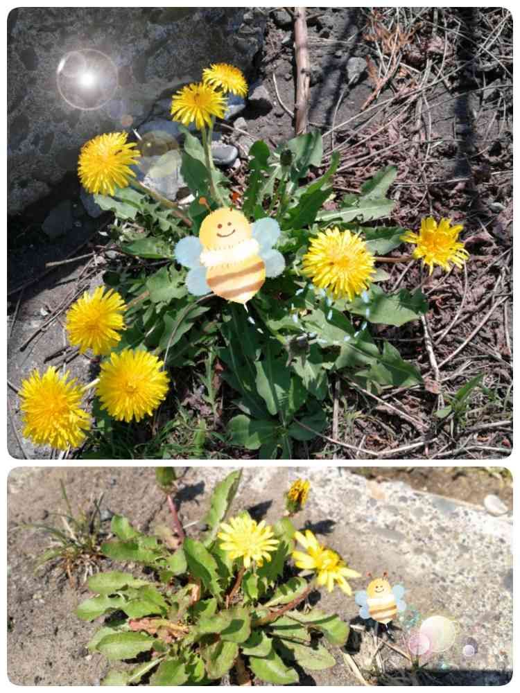 バスを待つ間…ふと足元に目をやると大きなタンポポ(ドイツ?)と小さなタンポポ(ニホン?)どっちも近くで咲いているのにサイズが全然違う!!ヮ(゚д゚)ォ!!