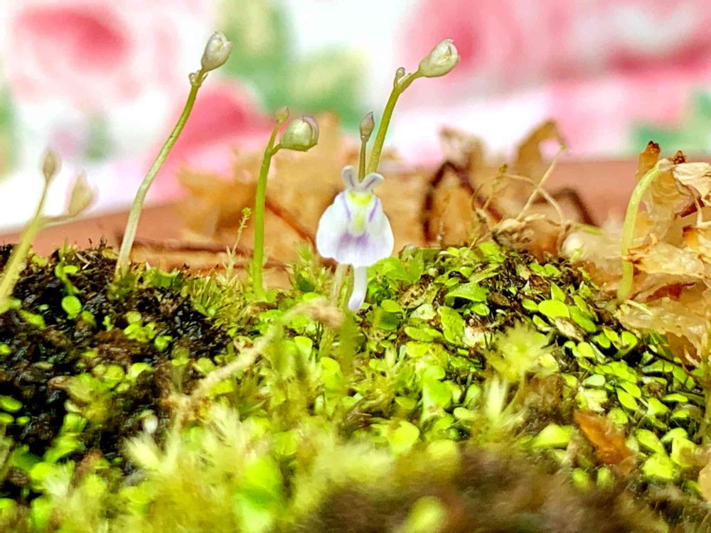 ハエトリソウと同じ日に植え替えたウサギゴケ。久しぶりにお花が咲きました