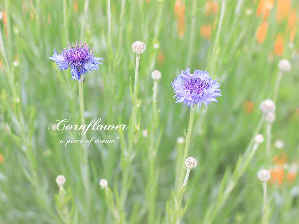 お散歩先で矢車菊の花畑をみつけました。