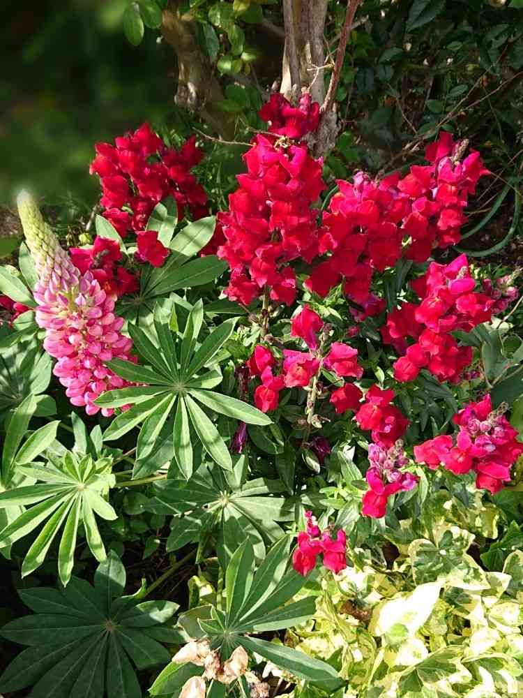 金魚草のとこから顔出したルピナス😄