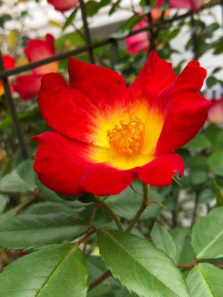 真っ赤な色と黄色との対比が素敵なつるバラです🌹( ˊ̱˂˃ˋ̱ )