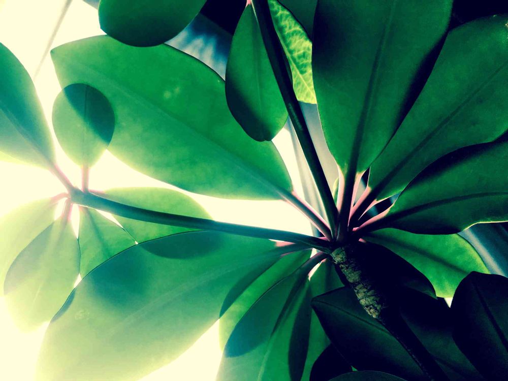 ほんとキレイ。上から見てた時は緑色が濃かったからもっと分厚い葉っぱかと思ってたけど、光通す薄さなんだね。ピンクがまた綺麗やー