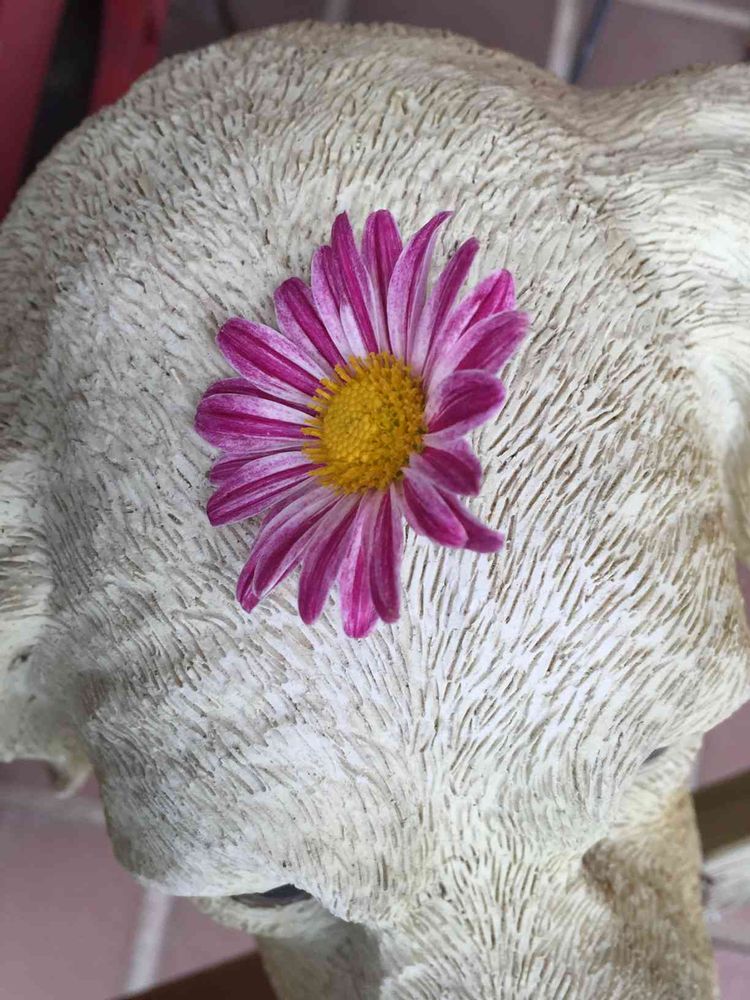 ワン🐶ちゃんの頭に お花🌼が咲いてますo(^o^)o