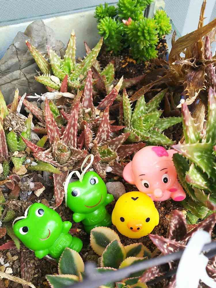 今日はカエル祭りですよ~🍀アロエで痛そうですけど🐸