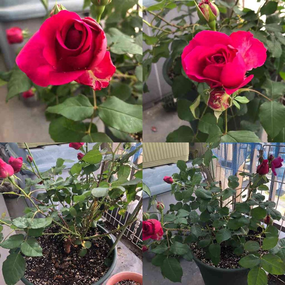 薔薇の名前ですが、赤バラは、写真での判断は厳しいと思います。種類も多いので、見た目だけでは難しいかと。香りとかに特徴があれば、わかるかもしれませんが、それでも難しいでしょう。