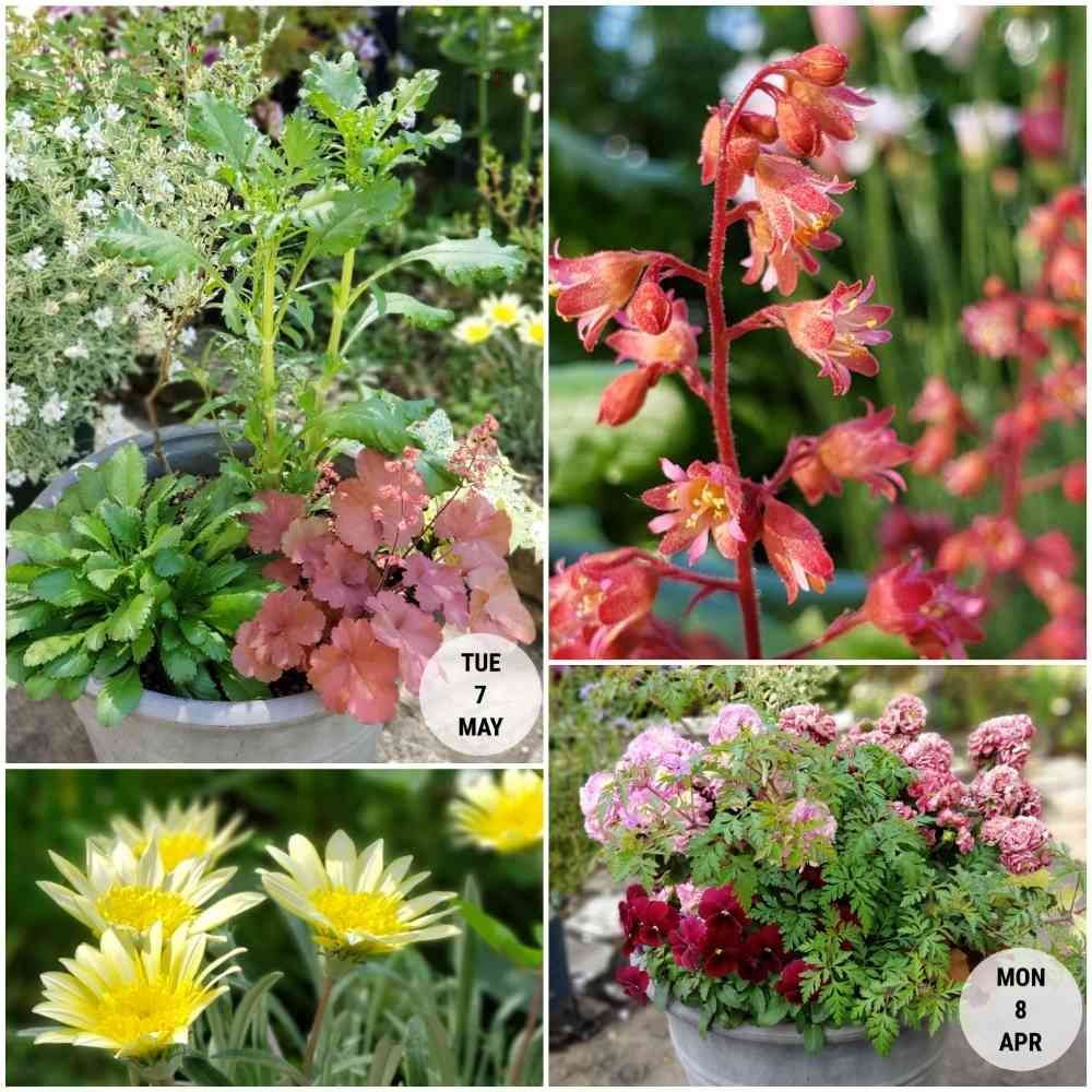 昨年から、冬の間ずっと咲いてくれていたストックの寄せ植え(右下)を夏バージョンに植え替えたのが4月8日でした。