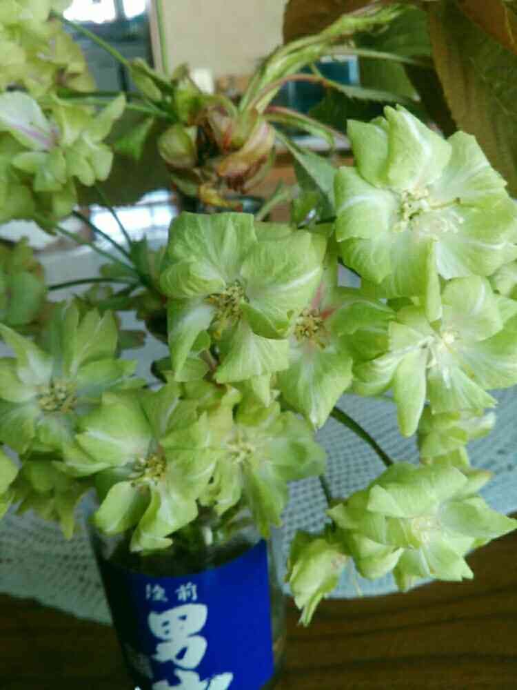 こんにちは( v^-゜)♪これ♪何だか知ってますか?初めて見ました(#^.^#)黄緑の桜です🙌知らないおばちゃんに頂きました😋挿し木したけど‥どうかなぁ?あー綺麗だゎ~💕すごーい( ☆∀☆)