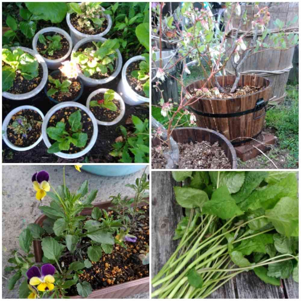 寄せ植えをバラして夏越しさせたいジュリアンなどを鉢に小分けにしてとりあえず桜🌸の木の下へ!