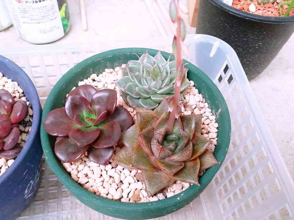 素焼き鉢でしわしわだった大和錦も寄植え。しわがなくなった!