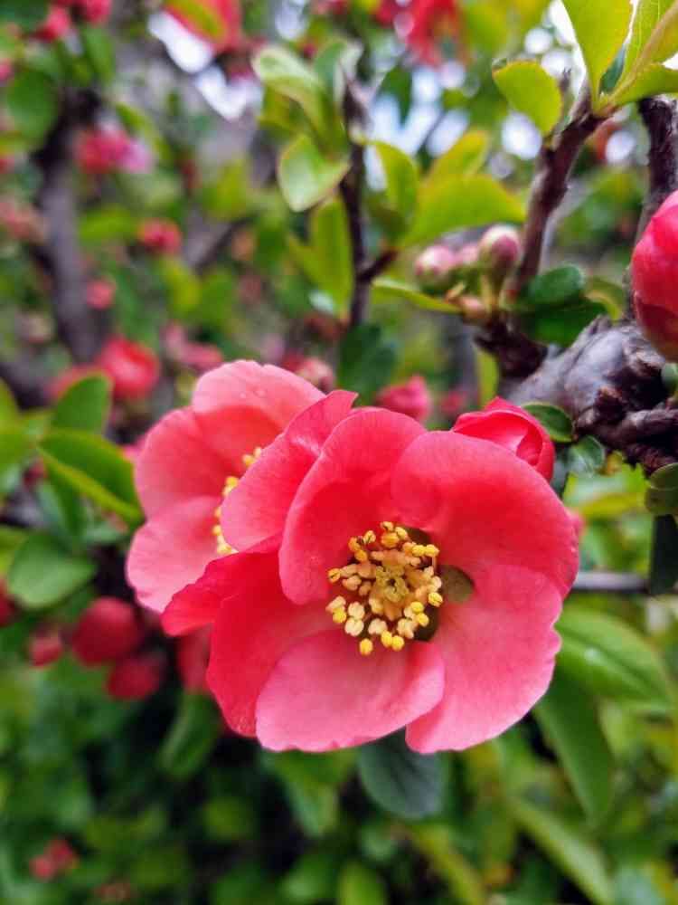 ボケの花が満開になってきました🎶