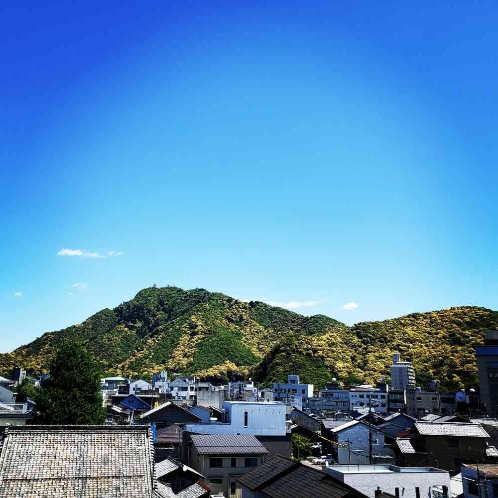 買い物の帰り道にお城を見たら山が黄色くなり始めてました。