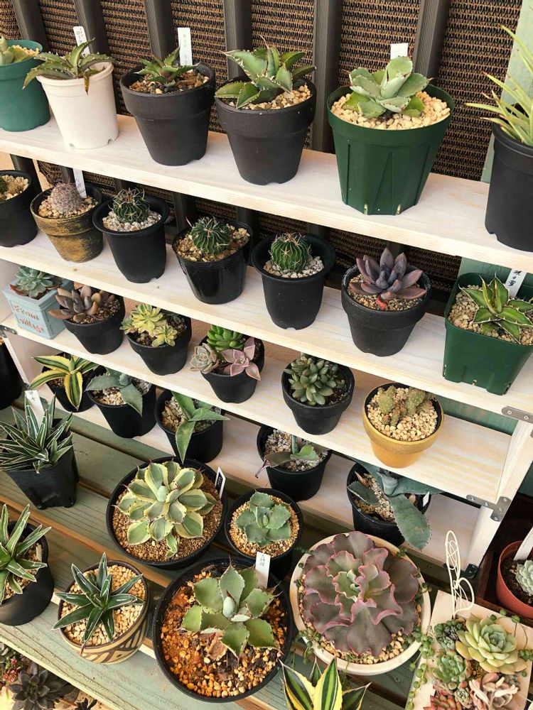 とりあえず並べてみたかったから、よく見たらアガベは一段目と台のとこだけで、棚には多肉とサボテンが並んでます笑