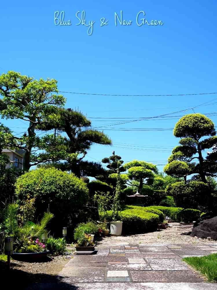 青空を背景に庭の新緑が眩しい❗🍃🌱💅