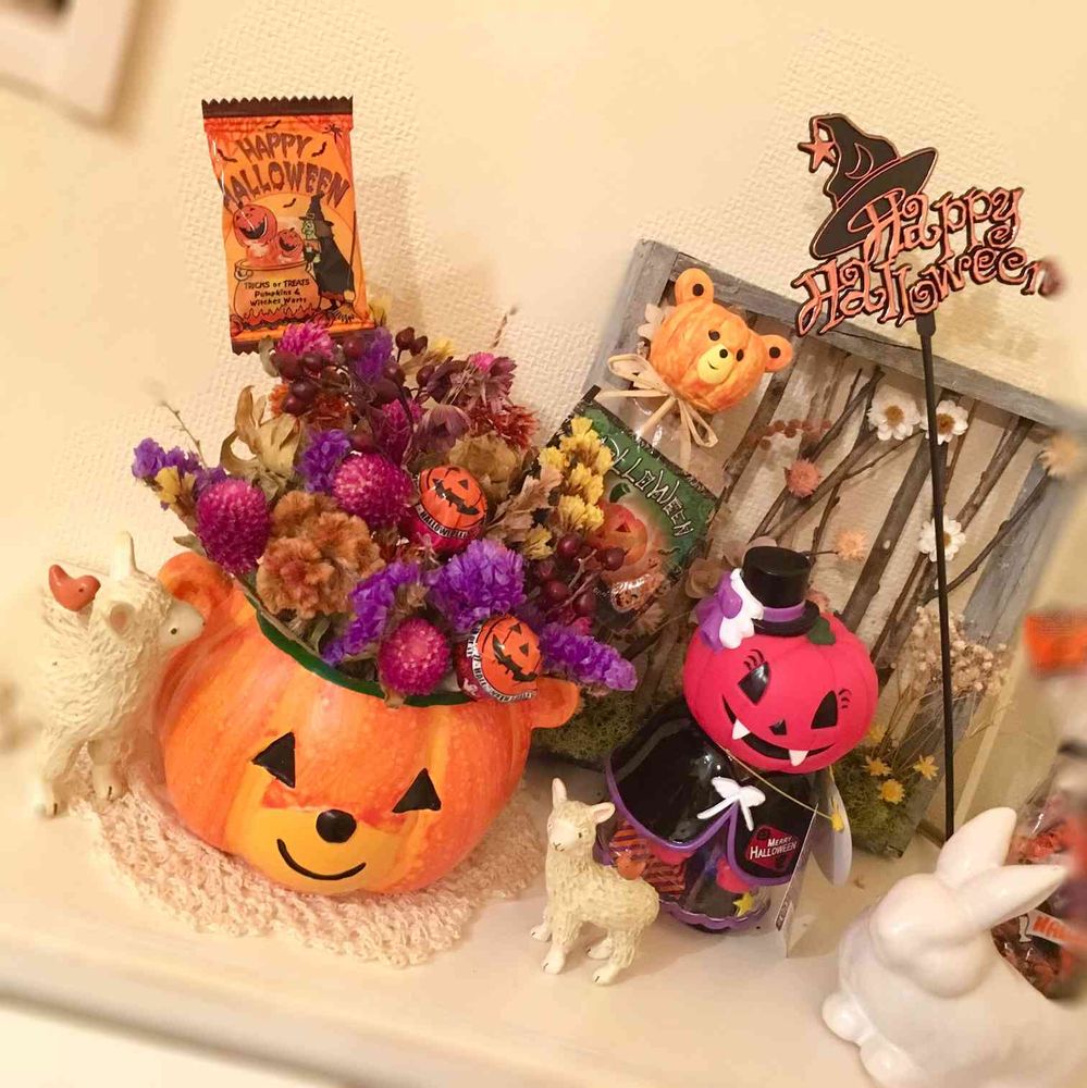 スーパーで買ったお菓子とハロウィンカラーのドライでアレンジしてみました。