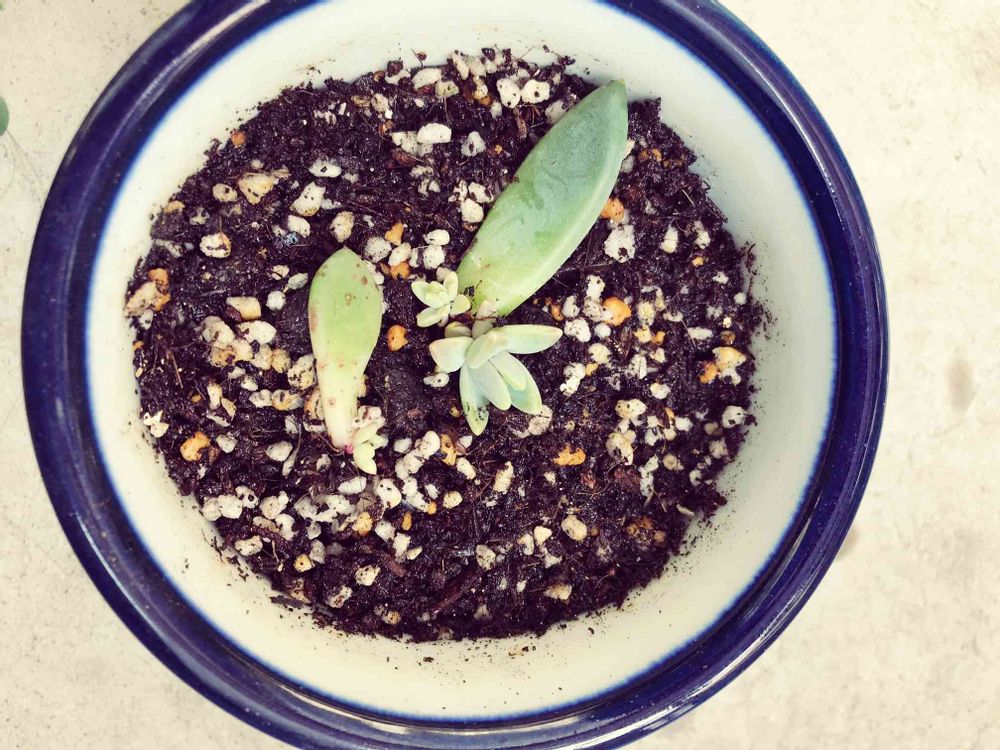 葉挿ししようとしてたらやっとポコポコ出てきた!かわいい。元気に育ってー!