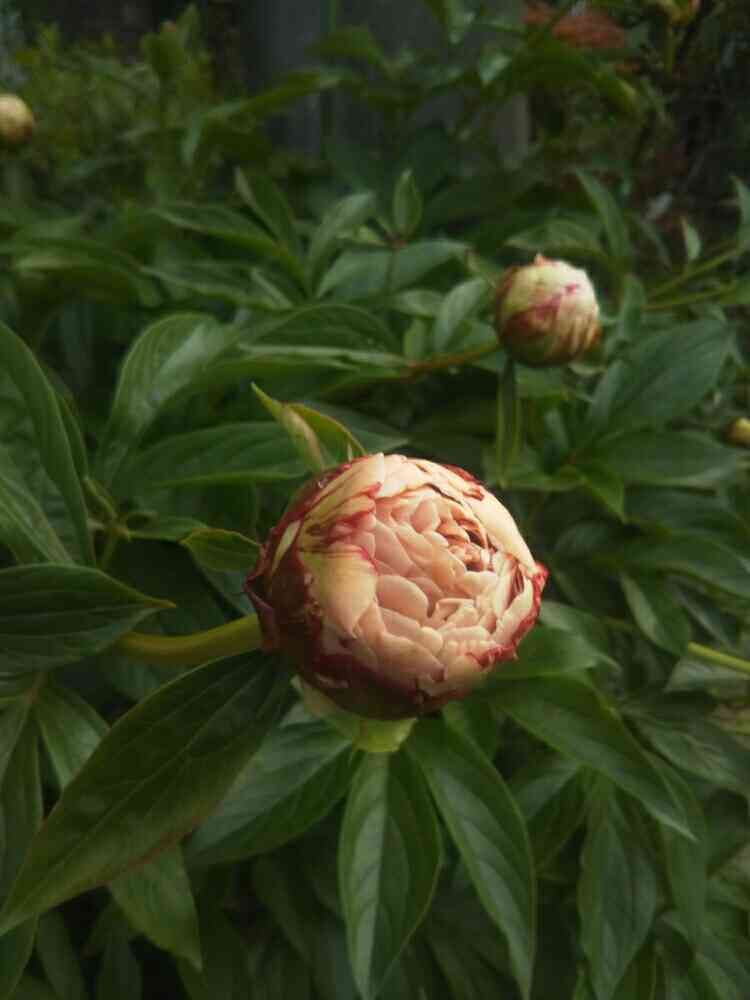 ボーダー花壇に植えてあるシャクヤクのつぼみです😃バラ🌹のアーチの横に植えて3年。鉢で育ててた時よりずっと元気で、今年は15個くらいこのつぼみをつけています🌱