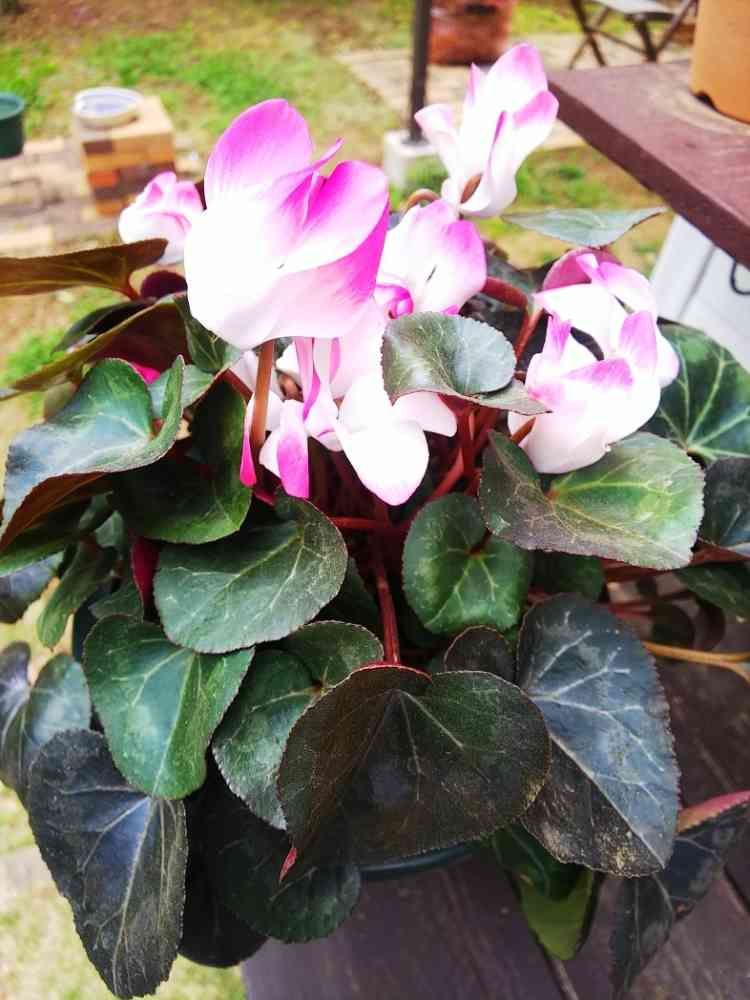 軒下に置いているシクラメン、まだチョボチョボ咲いてます✨