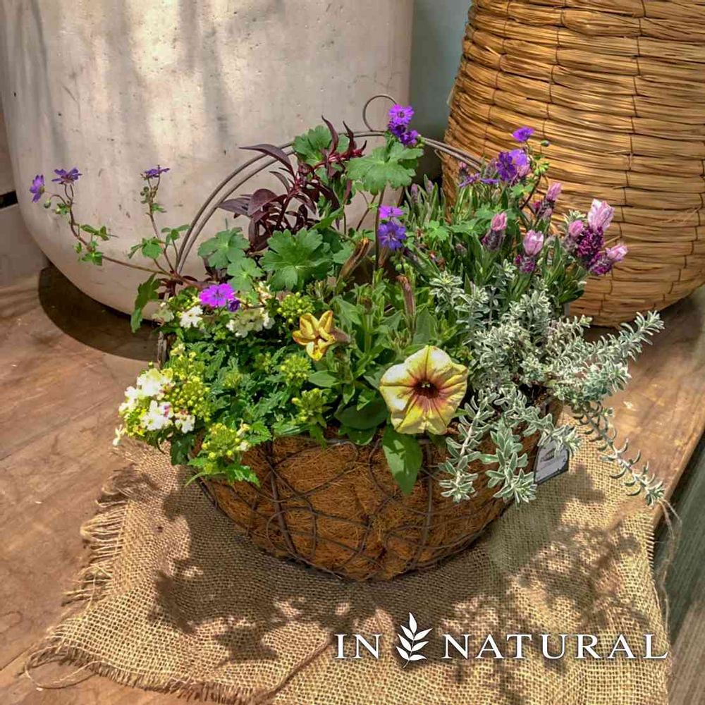 使いやすいカゴ型のハンギング器材に、インナチュラルおすすめのペチュニアを使って寄せ植えしてみましょう!