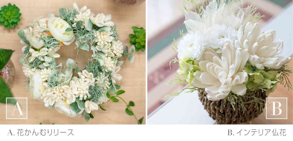夏の暑い時期、メンテナンスフリーなソラフラワーは大変重宝します。また、今回は、仏花というタイトルですが、もちろんお部屋のインテリアとしてもピッタリです。