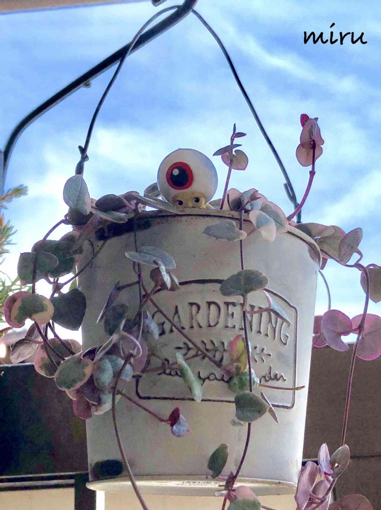 今日はいい天気☀️オヤジさん、高い所のレディハートさんの中から多肉さんの様子を見てるようです。👀