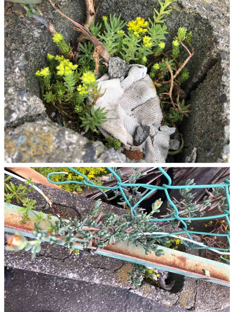 よく見ると詰められた軍手の隙間を縫って生えてきてるので軍手の多肉添えなのかも笑