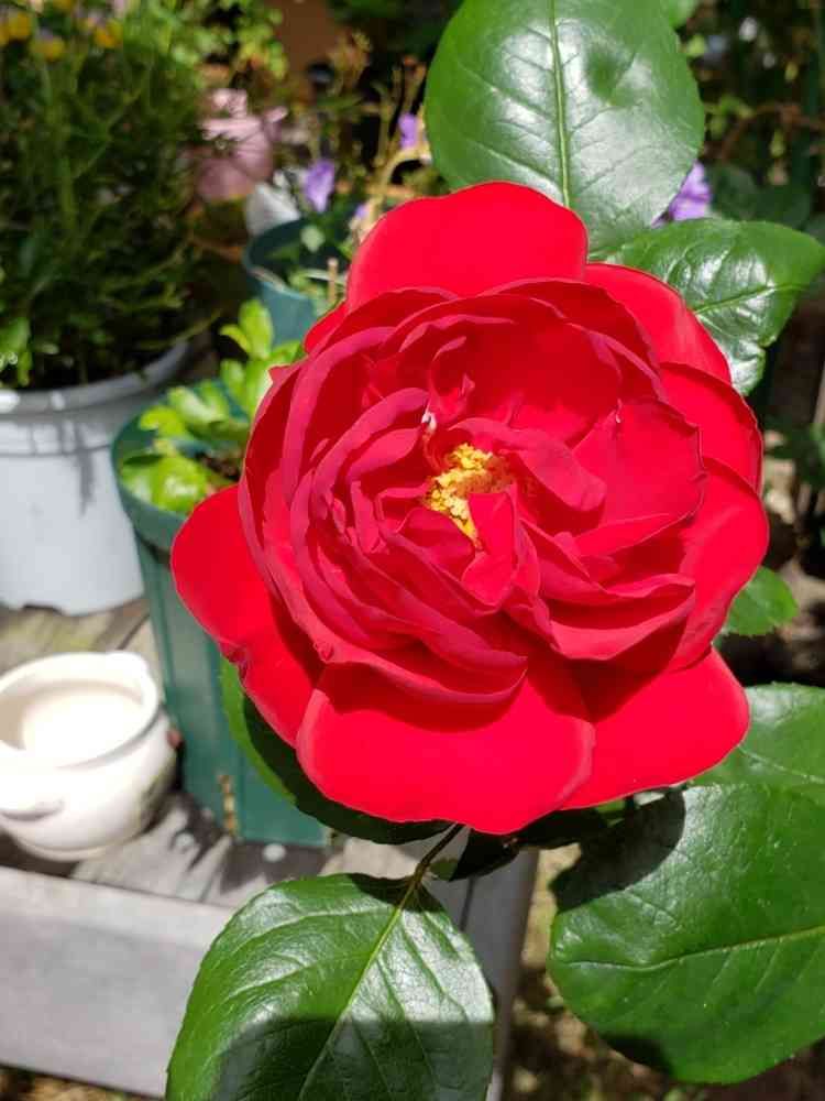 ダブリン・ベイが、咲きました。香りがわかりませんが、とてもきれいな赤の中に、黄色のシベがよく似合います。