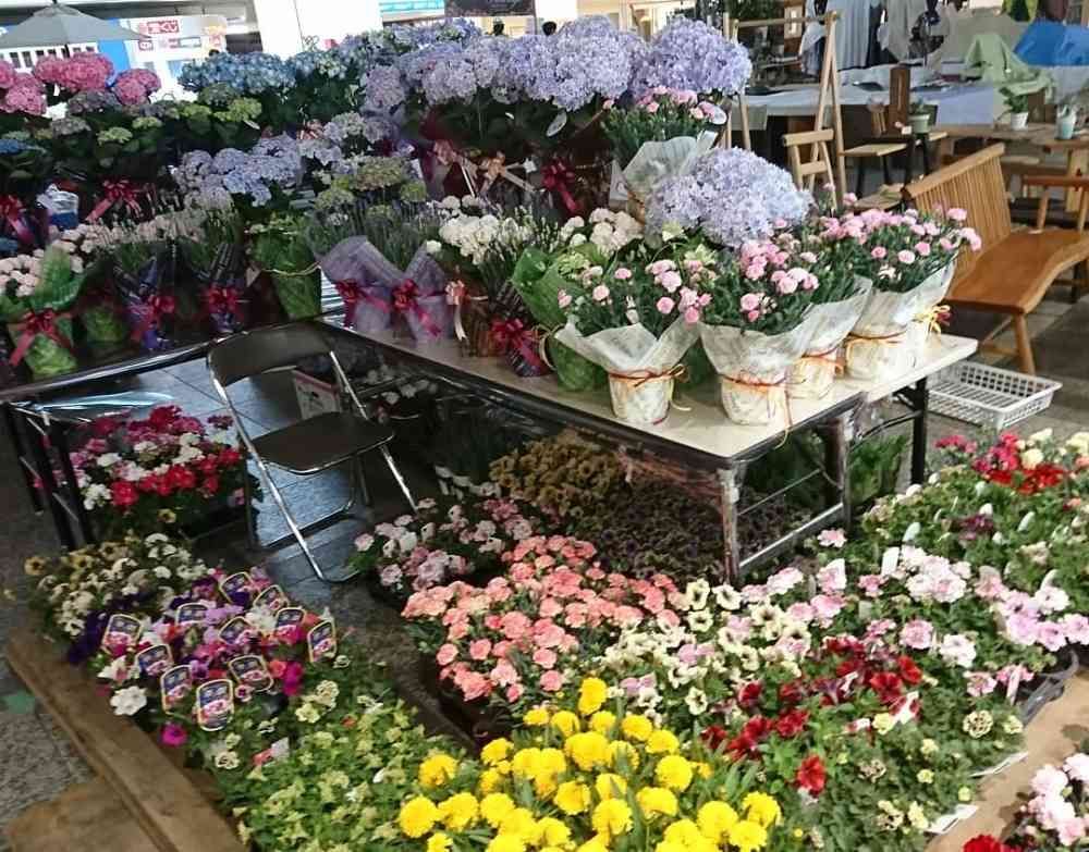 当店のコーナーでは、母の日にピッタリなアジサイやカーネーションに地元神戸産の良質な花苗も販売致します!