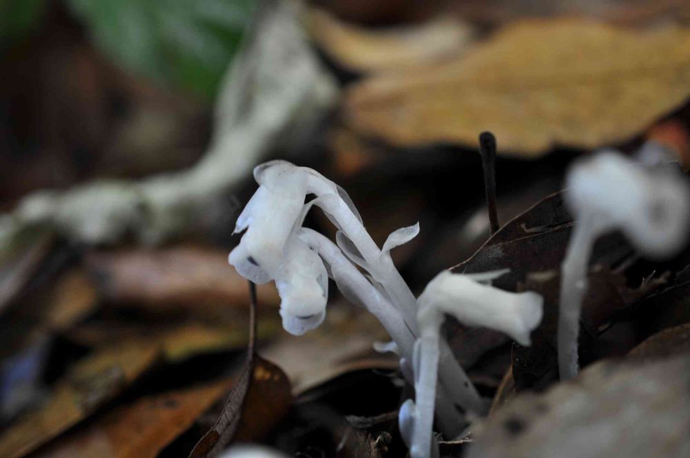 また、この植物は葉緑体を持たないため、光合成をして栄養を作り出すことがでず周囲の樹木と菌根を作るベニタケ類に寄生して、栄養を得ていると考えられており、菌類を利用して樹木が合成する栄養を間接的に得ているとのことです。