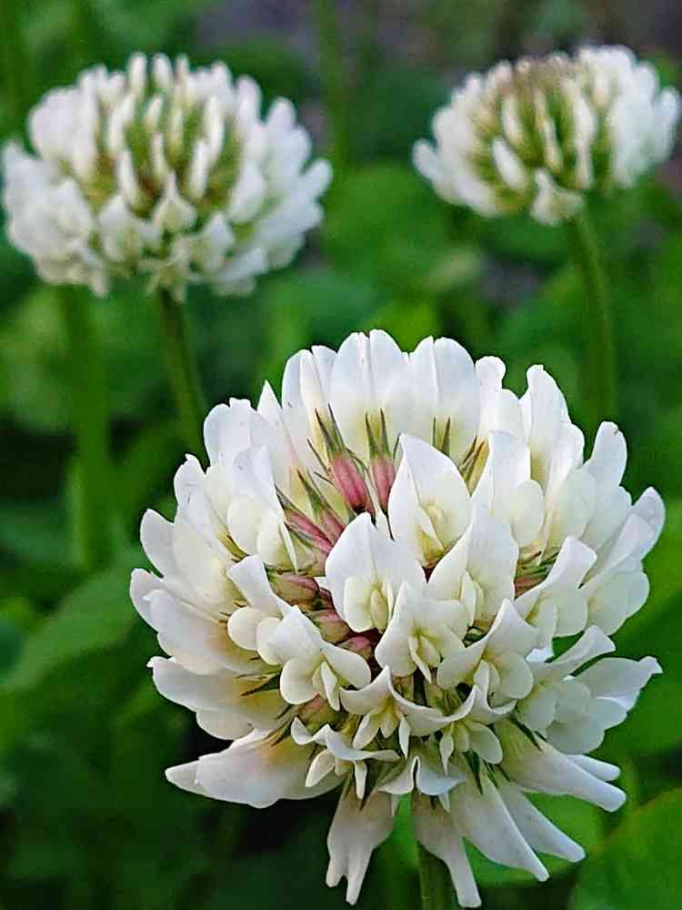 真ん中がほんのりピンクに染まったシロツメクサ☘️