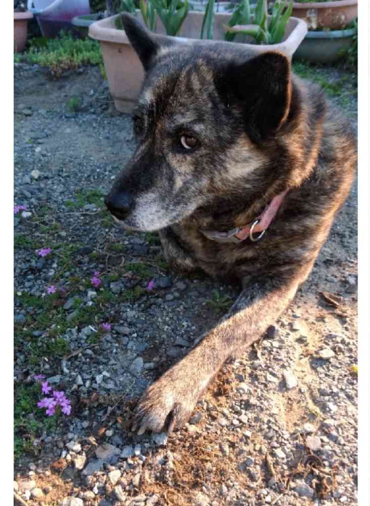 毎年咲いてくれるバーベナの横でくつろぐ🐶ク~ちゃんです