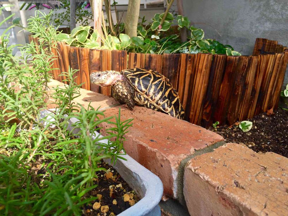 カメさん、ローズマリーみたいに固くてクセがあるの、食べるんですね!