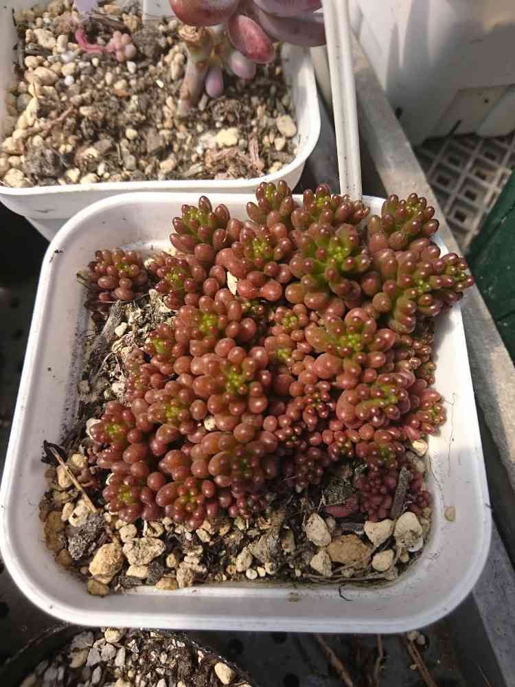 レッドベリーの葉挿し。他のレッドベリーはみどりんなのに、これだけはまだ赤い。