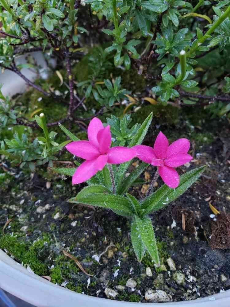 もう死んだかな、と思っていたアッツザクラが二年ぶりに咲きました。白は復活できませんでした。