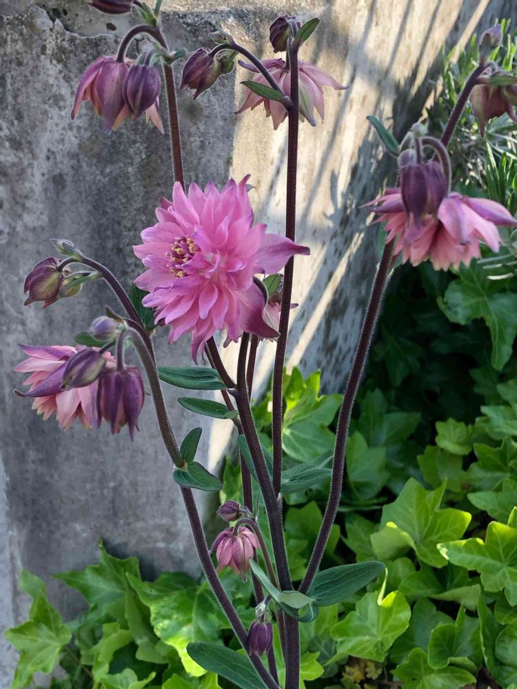 このオダマキはこぼれ種から咲いた花です😄 それもなんと我が家の前の道路と門のコンクリートの隙間から咲いてます。