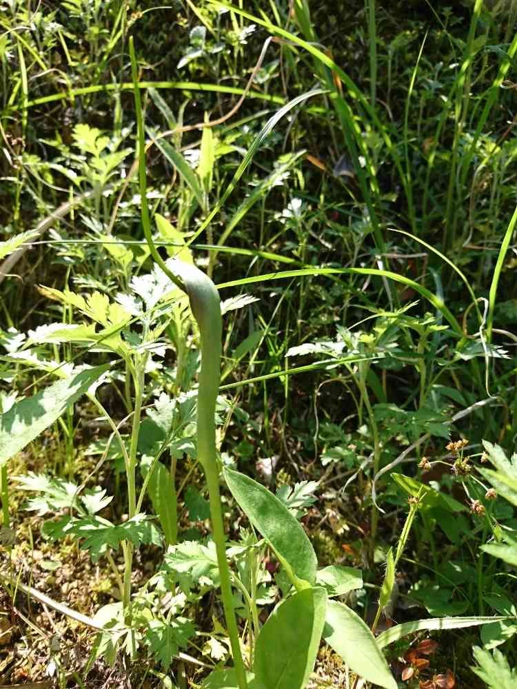 カラスビシャクのフオルムが可愛くて大好きです。にょろっとした形が最初見た時新鮮でした。つい、頭をちょんちょんしちゃいました(*´ω`*)