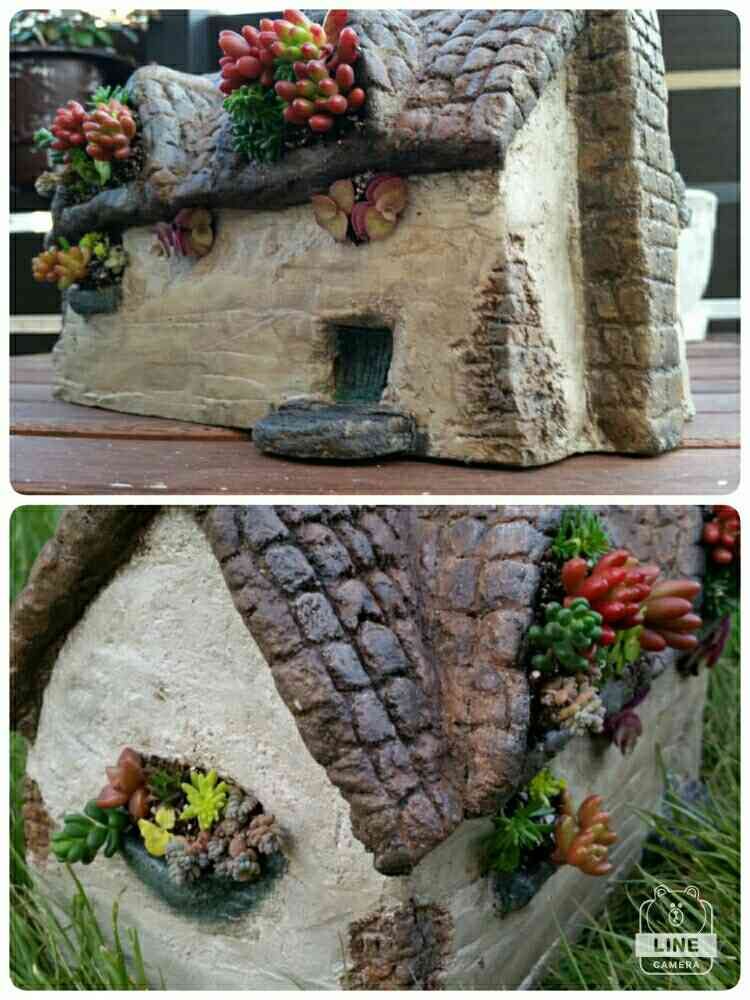 昨日ようやく出来上がったお家に多肉植物を植えてみました🎶