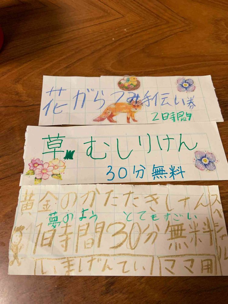 息子さんの黄金の肩たたき券は、スペシャルですが、今